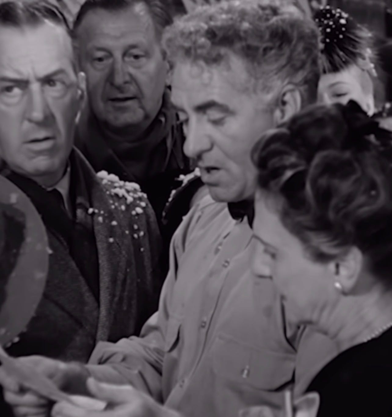 Of course the final minutes of the story are the most moving. But, it’s not little Zuzu announcing what a ringing bell means that gets my waterworks flowing. It’s not Harry toasting his brother George as ‘the richest man in town,’ either. It’s not Martini busting the juke box, Mr. Gower settling his charge accounts, Annie dumping her life savings in the basket, or a half-dozen other kindnesses amidst the cathartic closing. My tears are triggered by someone who isn’t even in the country, much less the room. It’s Sam Wainwright’s telegram from London, as read aloud by Ernie the cab driver. You remember Sam, dontcha? He’s the industrialist who invited George in on the ground floor of the plastics industry, even as he was losing his girl (Mary) to him over the phone. And honestly, it’s not even the wealthy fella’s $25,000 pledge ($400K in today’s dollars!) that does it for me, although clearly that’s the moment we all know George is going to be alright, his debt hurdle comfortably exceeded. Watch closely the next time you take it in. Look for Mary’s glance to George as the telegram’s incredible news is shared, and the realization that washes over George as his face falls and he squeezes Zuzu tightly. That’s the stuff. You might recall that he had told Potter he couldn’t get in touch with Sam. And I’ve long held that somehow it was Mary who found him and explained their plight. That has to account for the look she gives George. She made it happen. She literally saved the day. I can imagine how humbling it must’ve been to make that plea, but love won; shining bigger and brighter than anything in its way. A wonderful life, indeed.
